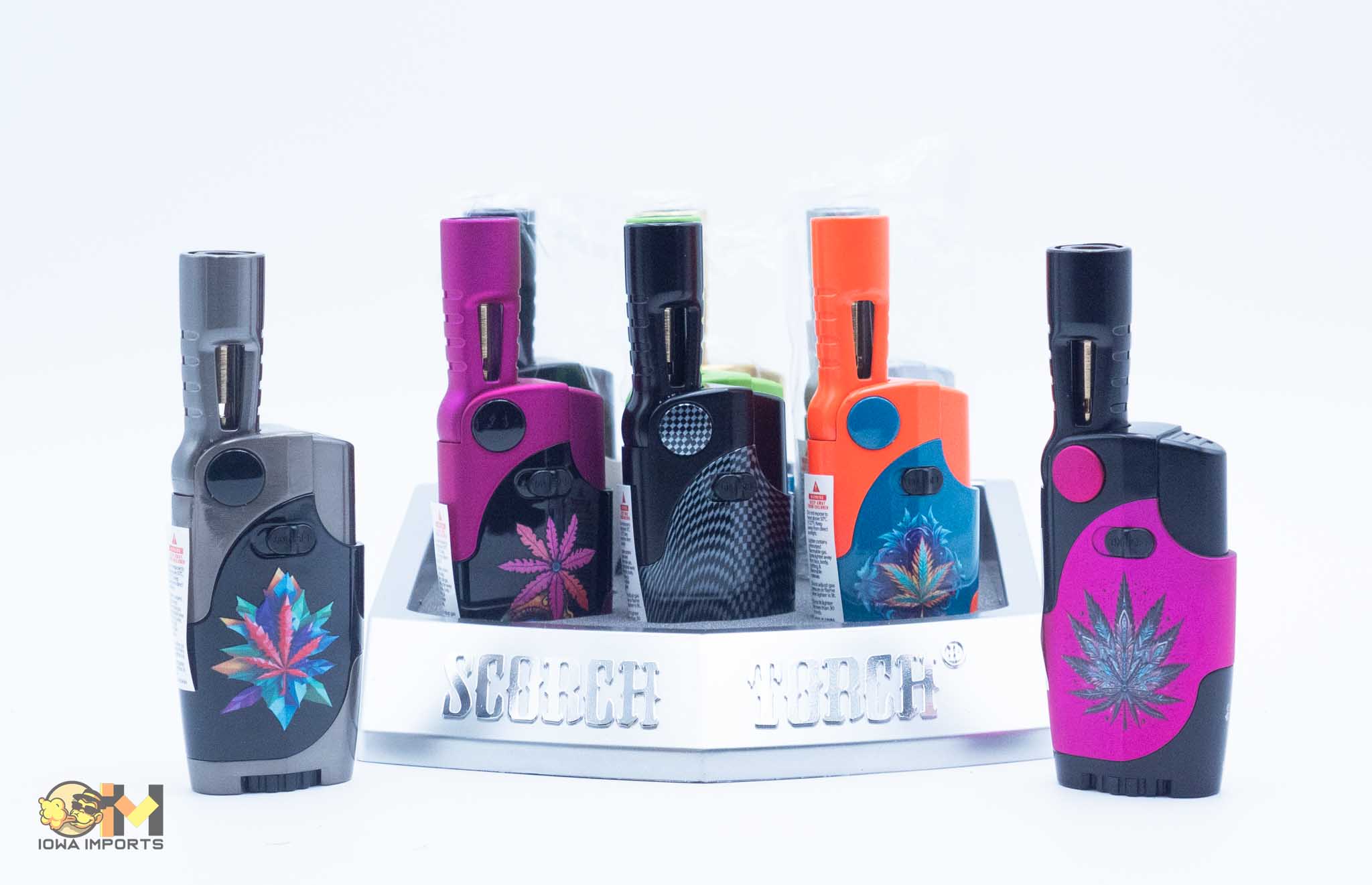 61761-1/Scorch Torch/Adjustable Torch/hold button-easy dial/asst neon leaf design, 9ct